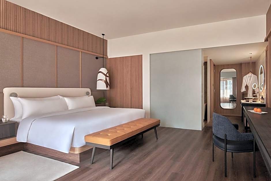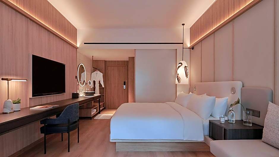This spacious suite is consisted of of 1 living room, 1 separate bedroom and 1 bathroom with a walk-in shower and free toiletries. The air-conditioned suite offers a flat-screen TV with cable channels, a mini-bar, a tea and coffee maker, executive lounge access as well as city views. The unit offers 1 bed.